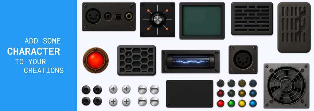 This is a graphics asset pack of x40 files comprising of screws, lights, vents, ports and lots of other fun and interesting bits and bops.