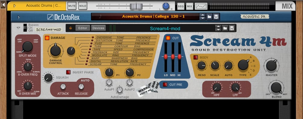 This is a Combinator patch which provides a modified version of the Scream4 distortion unit. Such modifications include;